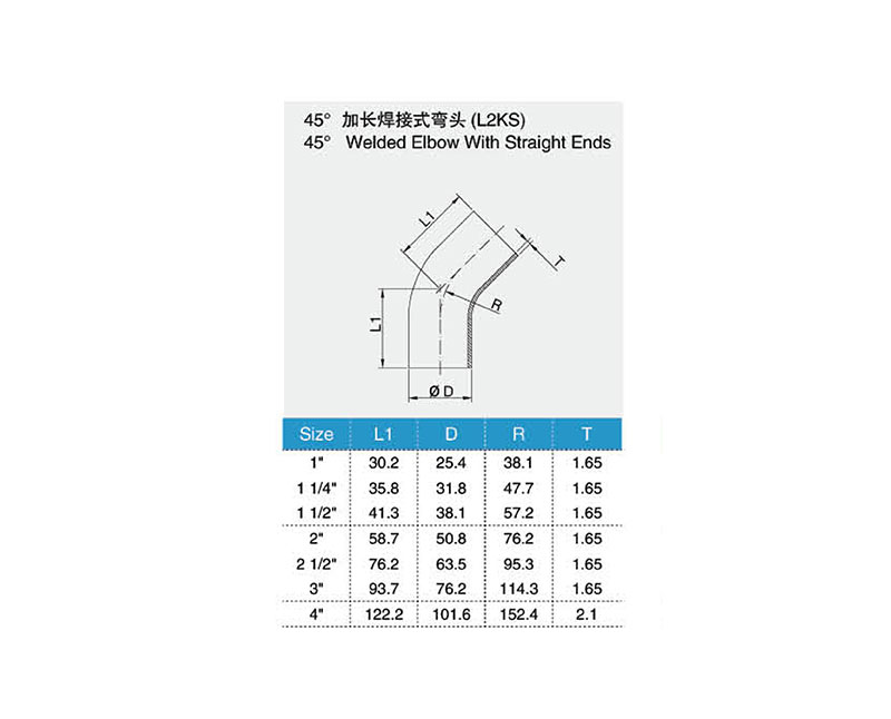 45°加長焊接式彎頭(L2SS)